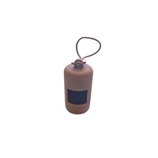 El dispensador de bolsas higiénicas incorpora una goma para que puedas colgarlo del sitio que mejor te venga, como por ejemplo, en alguno de los enganches de la correa.